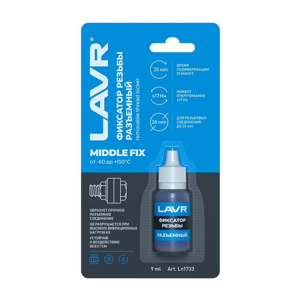 Состав герметизирует и фиксирует резьбовые соединения, требующие периодического демонтажа при сервисном обслуживании. Препятствует саморазвинчиванию деталей при вибрационных и ударных нагрузках. Быстро полимеризуется, устойчив к воздействию технических жидкостей. Применяется на любых резьбовых соединениях из черных металлов.