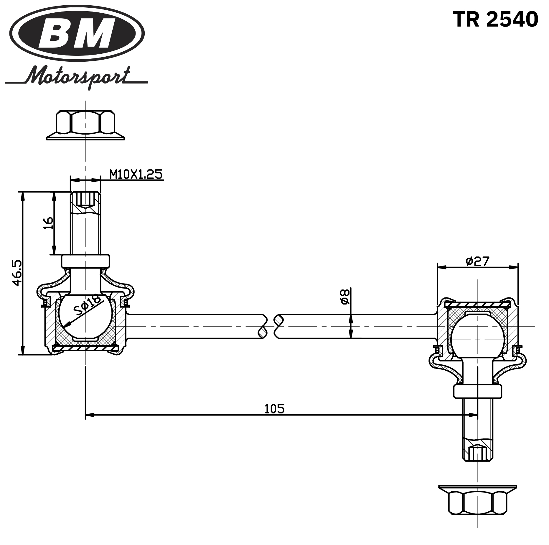 BM Стойка стабилизатора заднего, правая/левая TR2540